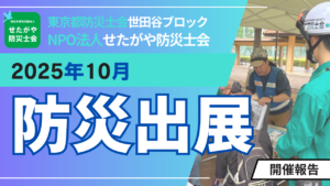 【ご来場ありがとうございました!】第50回雑居まつり 防災ブース出展報告 去る10月12日(日)、羽根木公園にて開催された「第50回雑居まつり」に、せたがや防災士会として防災ブースを出展しました。 当日は天候にも恵まれ、 […]